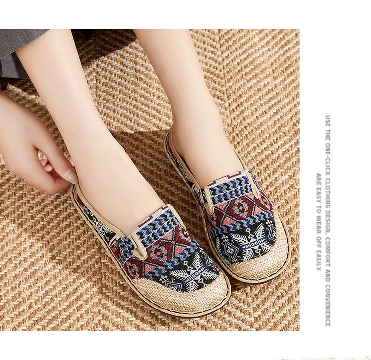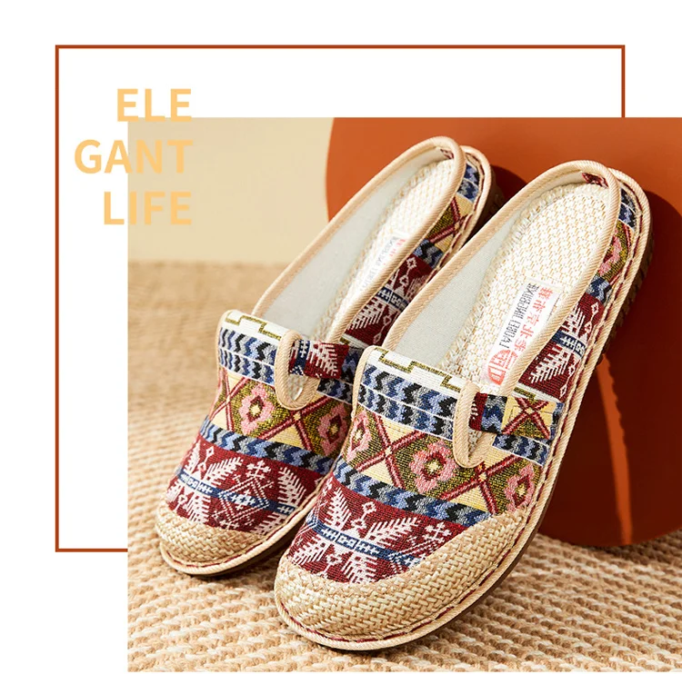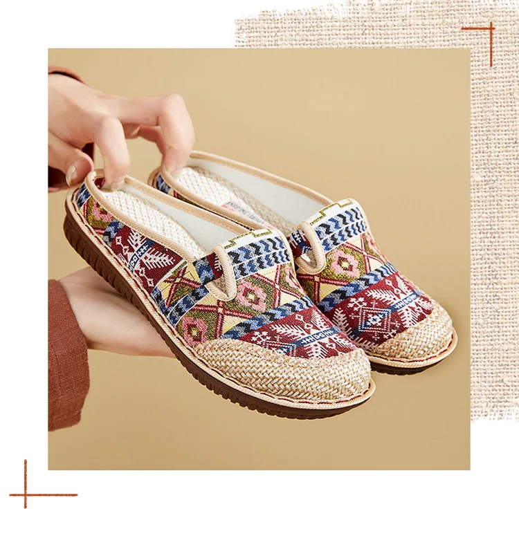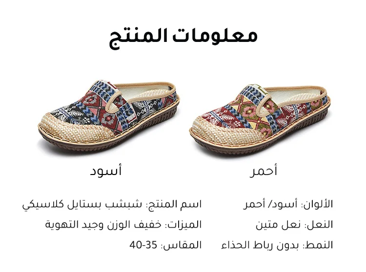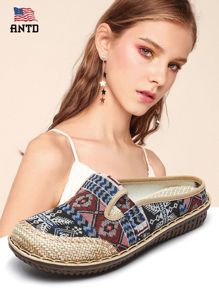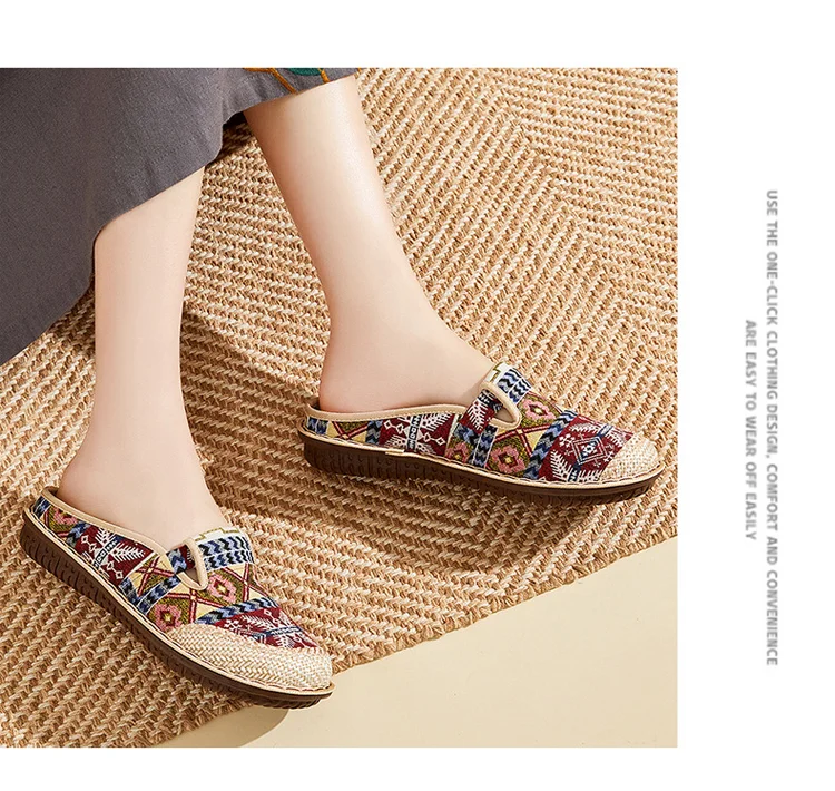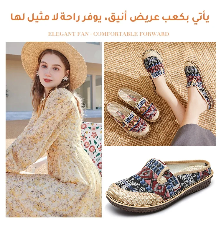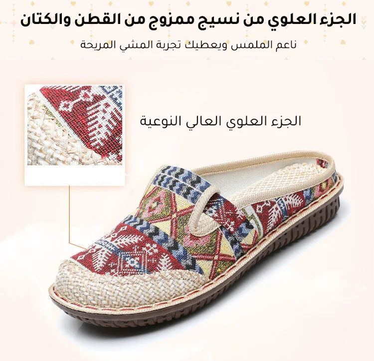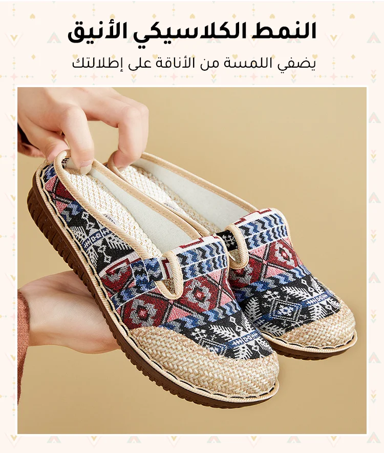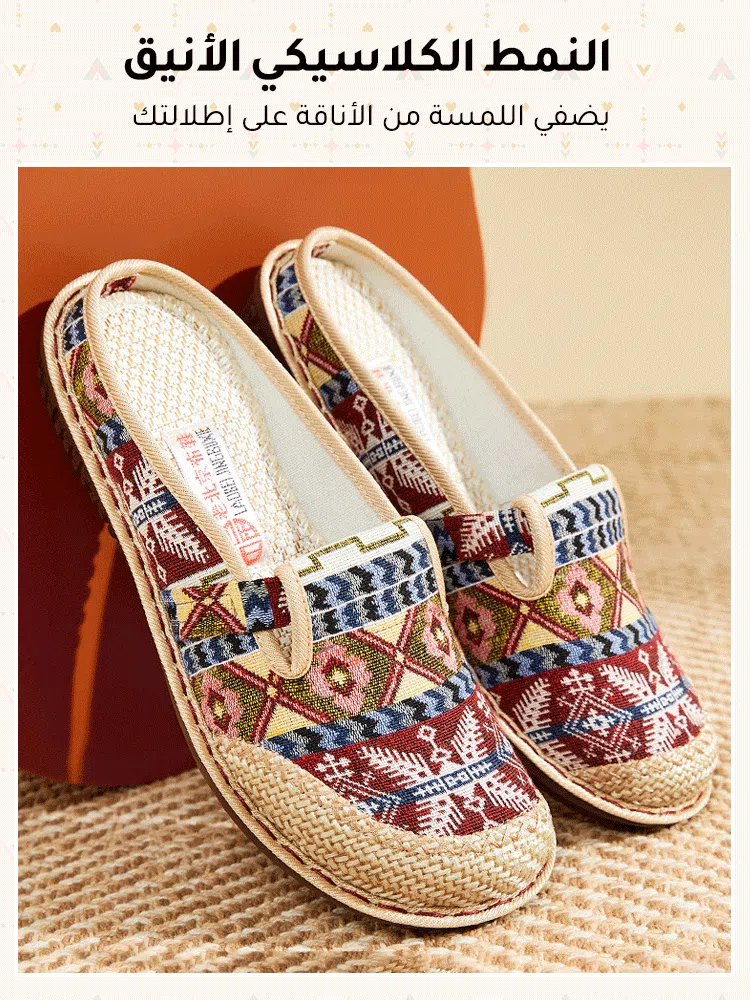 شبشب نسائي مسطح على الطراز العرقي