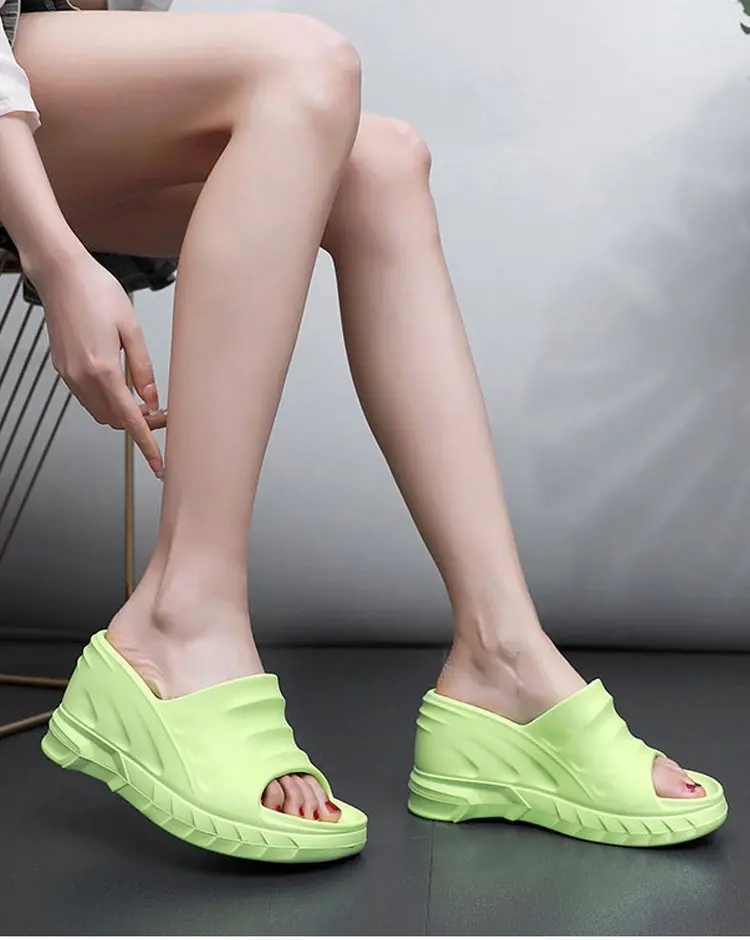 أزياء النعال إسفين منصة بلون عدم الانزلاق